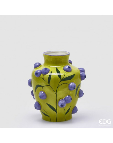 Precio regular 82,00 € -15% Precio 69,70 €Jarrón de cerámica compuesto por arándanos Hecho y pintado a mano en Italia Altura 26 cm Resistente al agua -