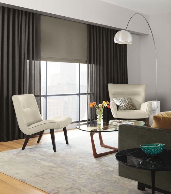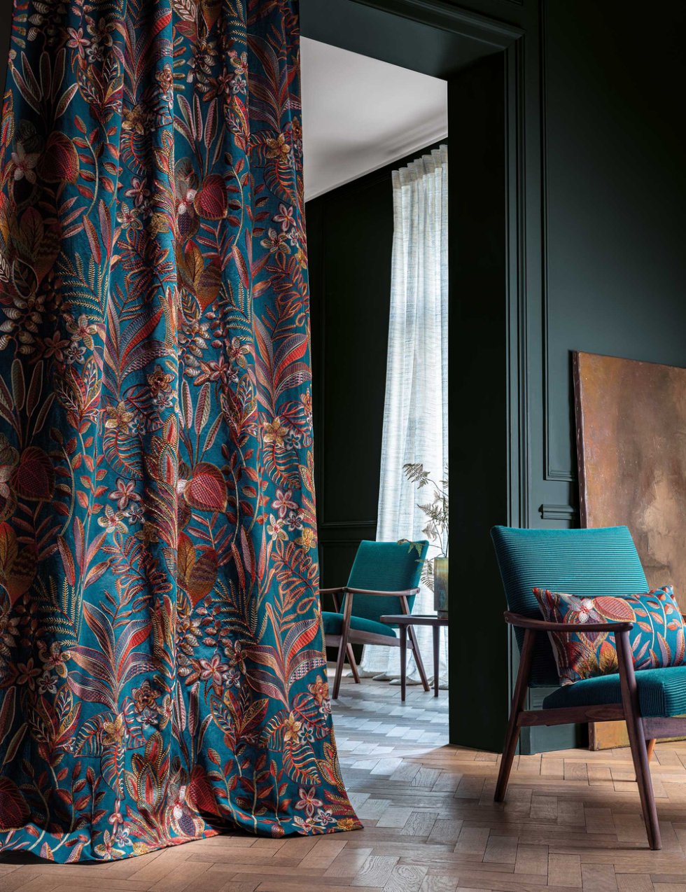 - Caídas. Se trata de cortinas laterales decorativas que no llegan a cerrar. Pueden ir solas o en compañía de otras confecciones a media como un visillo o con sistemas de protección solar interior.