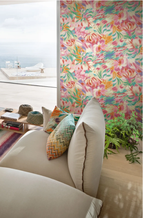 Trabajamos con muchas marcas de papeles pintados, entre ellas Romo Fabrics, Clarke & Clarke, ALDECO, Roberto Cavalli y Missoni.