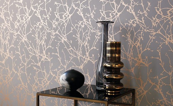 Descripción : Ramas entrelazadas elegantes en tonos metálicos elegantes dan un sentido lujoso a tonos calizos apagados.