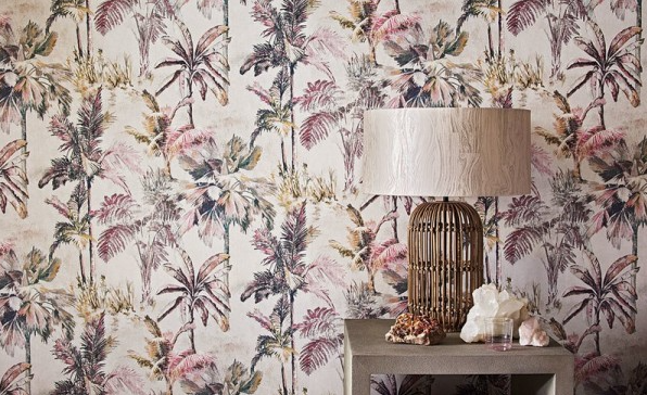 Descripción Escenas exóticas de palmeras y follaje exuberante crean un papel pintado maravillosamente decorativo. Infundido con una abundancia de color, este diseño elegante se inspira en la vitalidad de los trópicos.