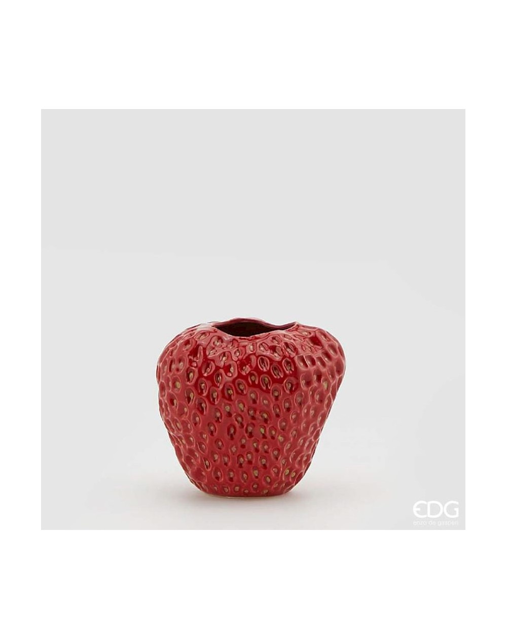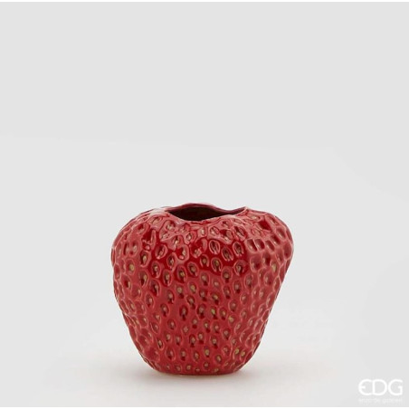 - Jarrón de cerámica color rojo en forma de fresa.