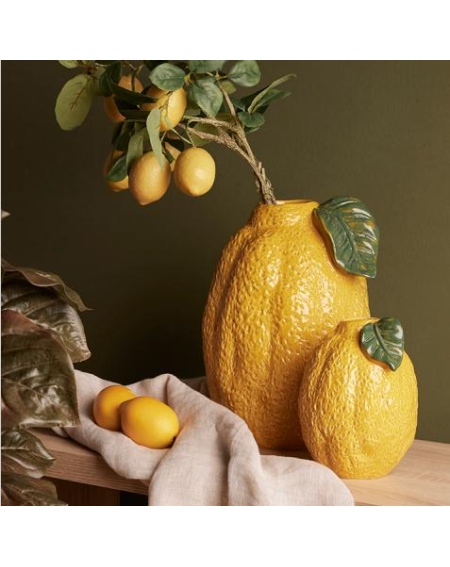 El Jarrón Limón H30 es una representación elegante y fresca de los cítricos, ideal para aportar vitalidad a tu hogar. Este jarrón, con su altura de 30 cm, es perfecto para aquellos que desean un elemento decorativo destacado en espacios como salones o comedores. Su vibrante color amarillo y sus detalles realistas capturan la esencia de los limones, creando un punto focal fresco y lleno de vida. Fabricado en cerámica de alta calidad, el jarrón ofrece durabilidad y estilo en cualquier ambiente.