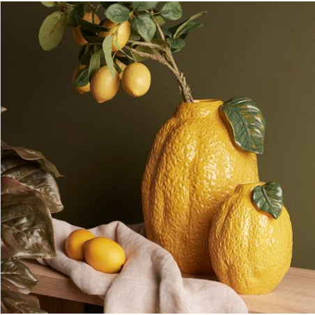 - Jarrón de cerámica en forma de limón.