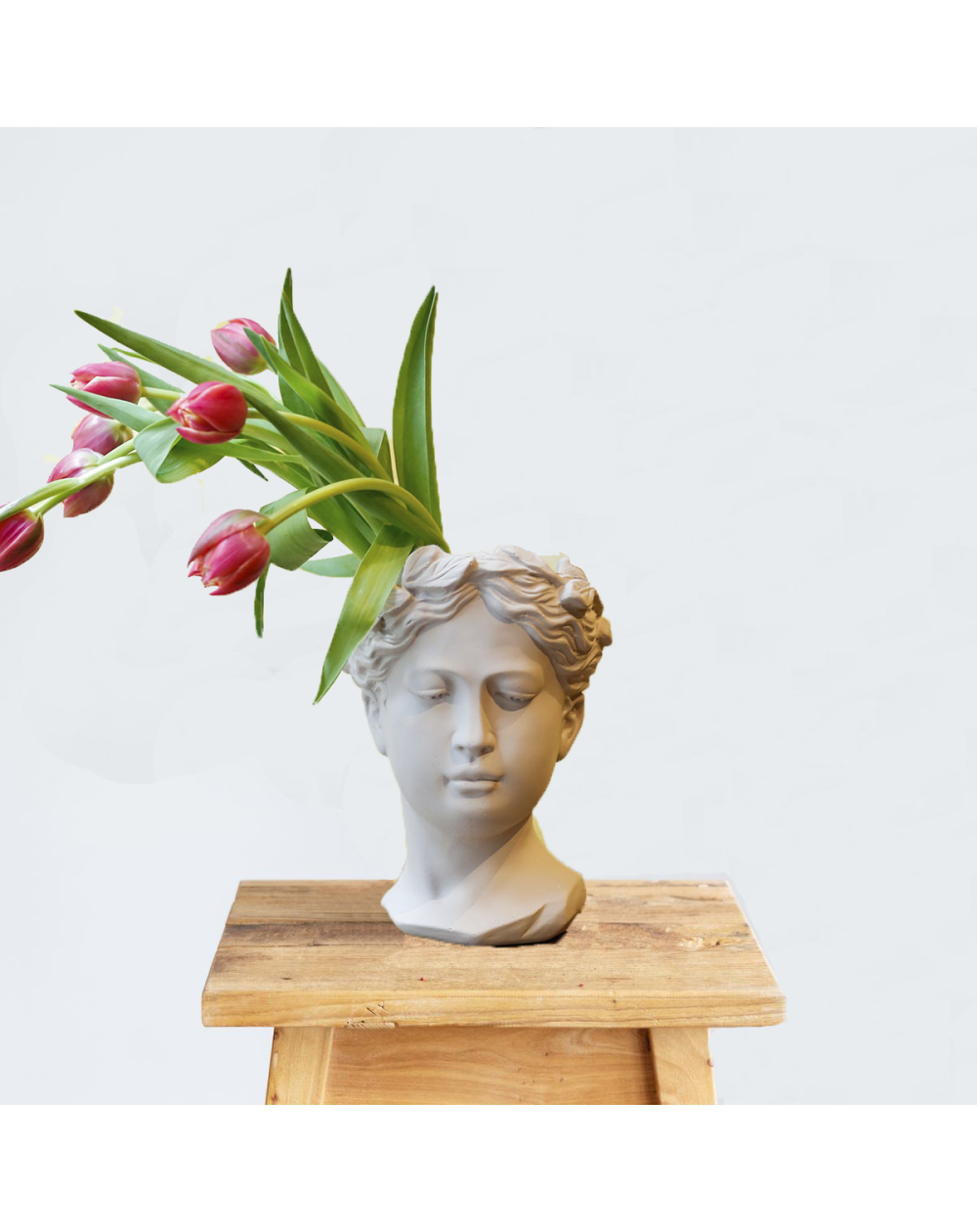 Jarrón de cemento Testa Donna + 10 Tulipanes rosas