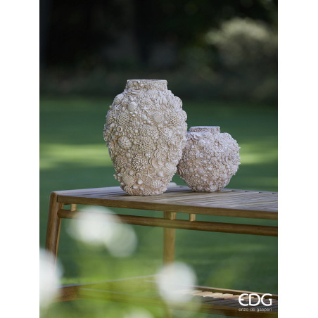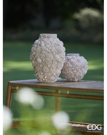 El Jarrón Conchas H20 es una versión más compacta, perfecta para aquellos que buscan decorar con un toque marino sin ocupar mucho espacio. Con 20 cm de altura, este jarrón es ideal para mesas pequeñas, estanterías o escritorios, ofreciendo un diseño elegante inspirado en las conchas del mar. Su acabado en cerámica blanca y su detallado diseño lo hacen perfecto para decoraciones náuticas o minimalistas.